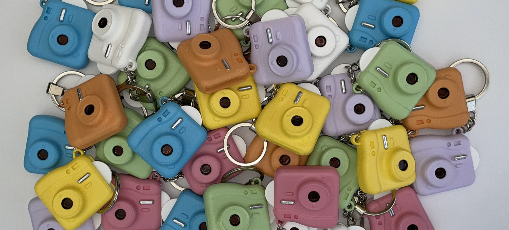 - Mini camera-sleutelhangers: Persoonlijke sleutelhangers die je favoriete foto’s bevatten, verkrijgbaar in verschillende kleuren.