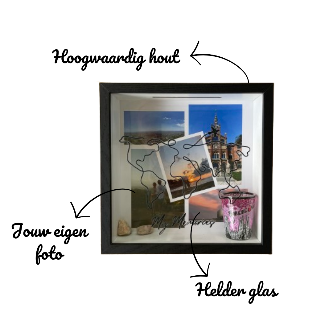 De 3D-fotolijst van hout en glas biedt eindeloze creatieve mogelijkheden. Voeg foto's en tastbare items toe voor een persoonlijke en speciale uitstraling. Of je nu gaat voor een moderne of nostalgische sfeer, deze veelzijdige lijst laat je dierbare momenten op jouw manier schitteren. Maak van je herinneringen een kunstwerk.